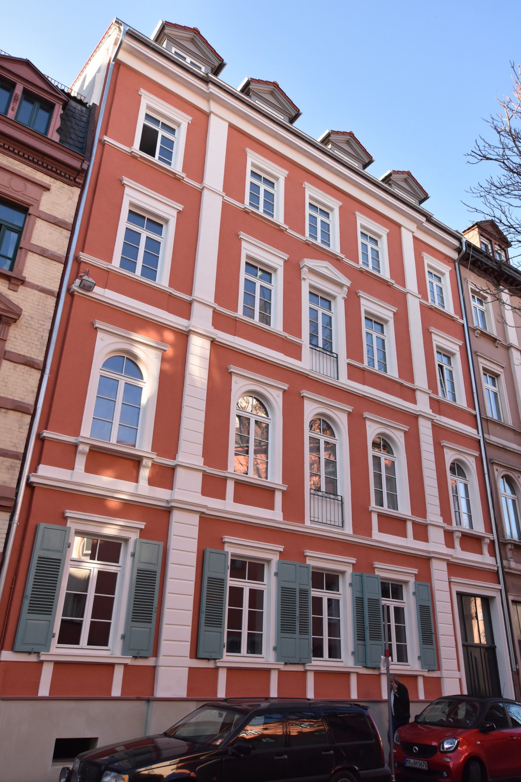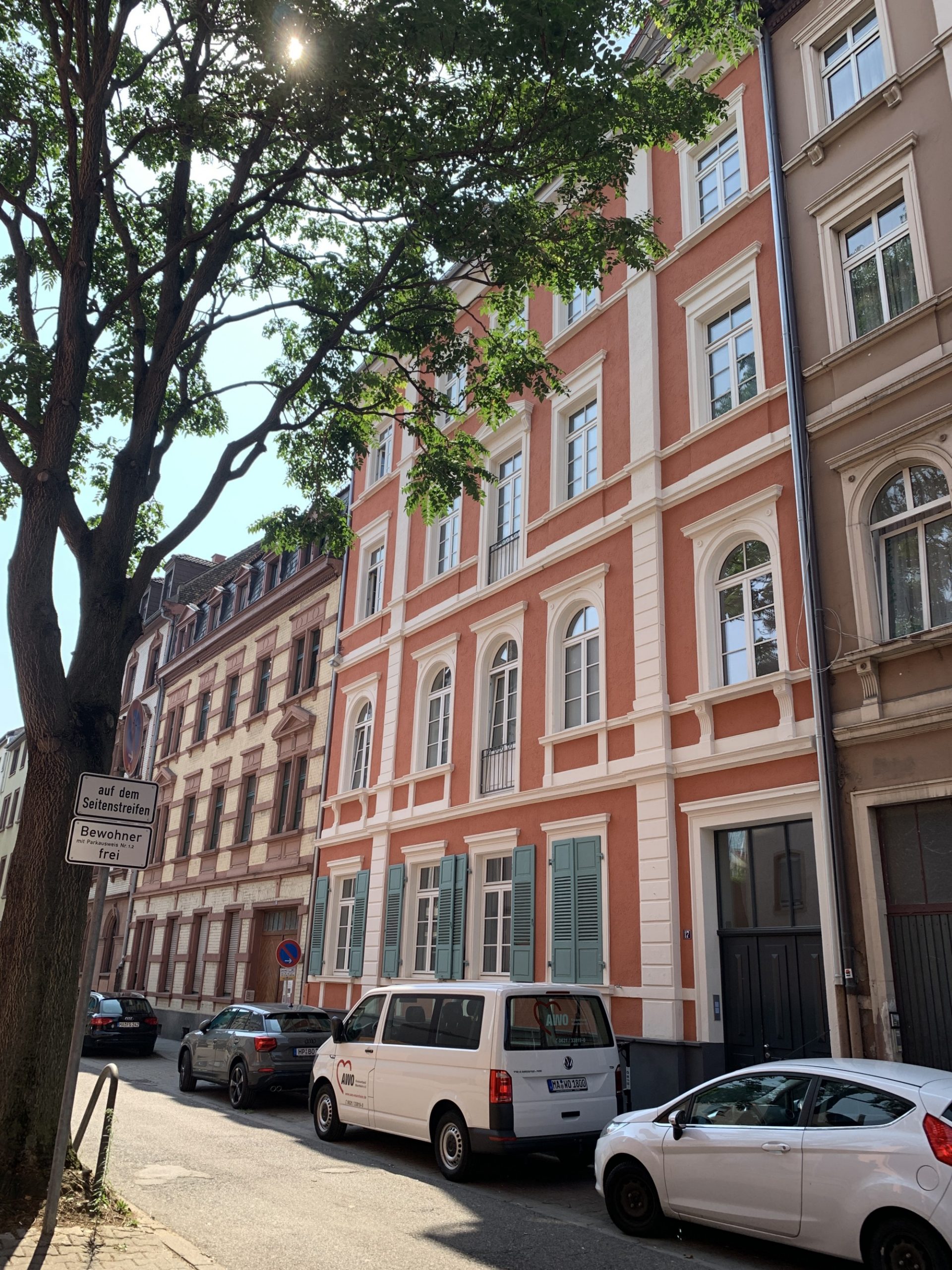 Das denkmalgeschützte Wohnhaus in den Mannheimer Quadraten mit Baujahr 1873 befand sich zu Beginn der Sanierung in einem sehr schlechten und abgewohnten Zustand. Einiges der schützenswerten Altsubstanz wurde durch Renovierungen in vergangener Zeit sehr sorglos zerstört oder beseitigt, so dass innerhalb des Hauses nur wenig interessanter und erhaltenswerter Bestand gefunden wurde.