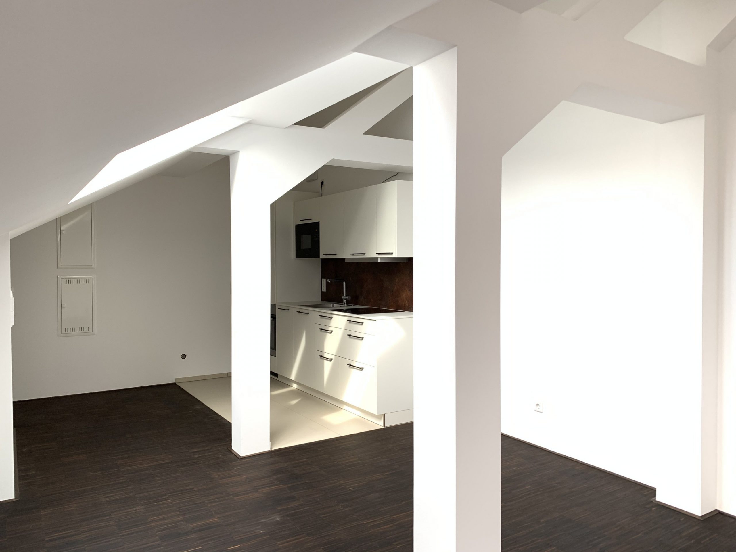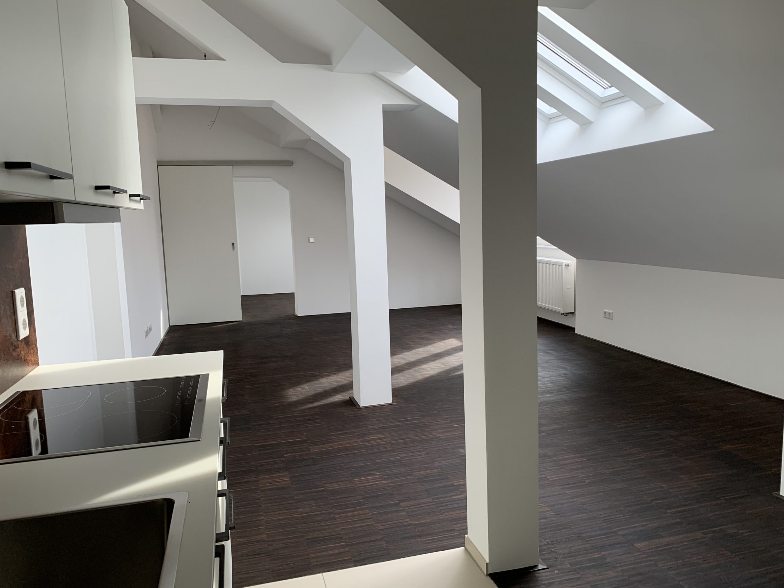 Die Sanierung wurde in teilbewohntem Gebäude in mehreren Bauabschnitten von 2014 bis 2020 realisiert. Durch leichte Umstrukturierung der Grundrisse konnten die Wohn- und Schlafbereiche optimiert werden. Die Bäder wurden an einem neuen zentralen Versorgungsschacht im inneren Hausbereich angeordnet.