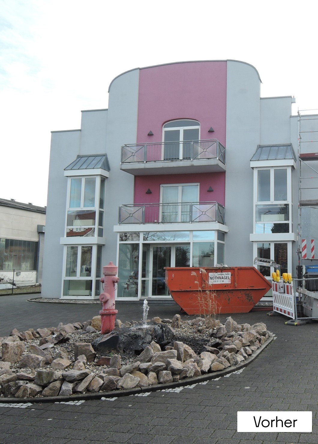 Die Elementbauweise emöglichte eine kurze Bauzeit. Der Firmenbetrieb konnte unterbrechungsfrei weiterlaufen. Das Umbaukonzept sieht ein komplett überarbeites Escheinungsbild für den Baukörper vor, der im Stil der 90er Jahre gehalten war.