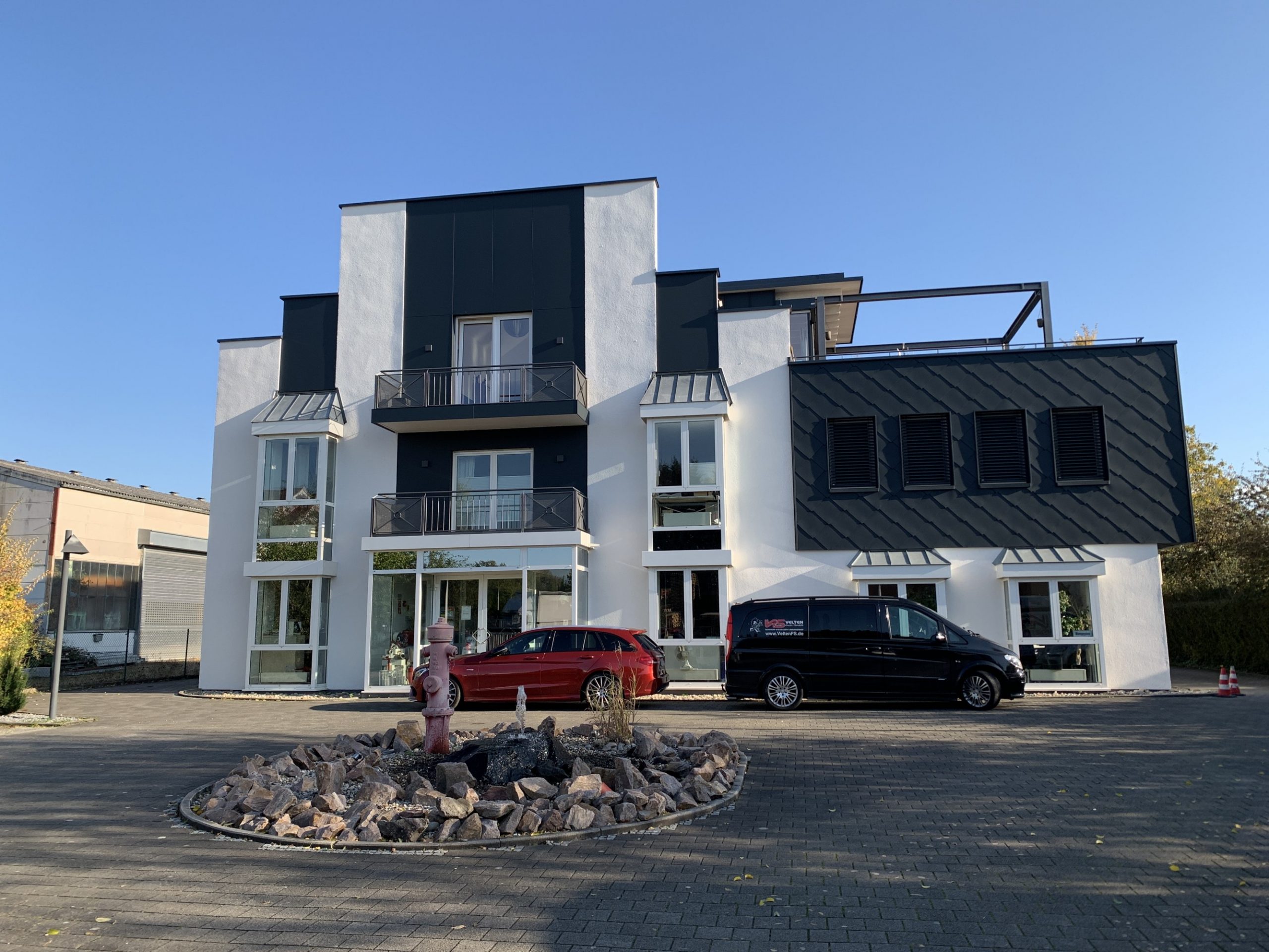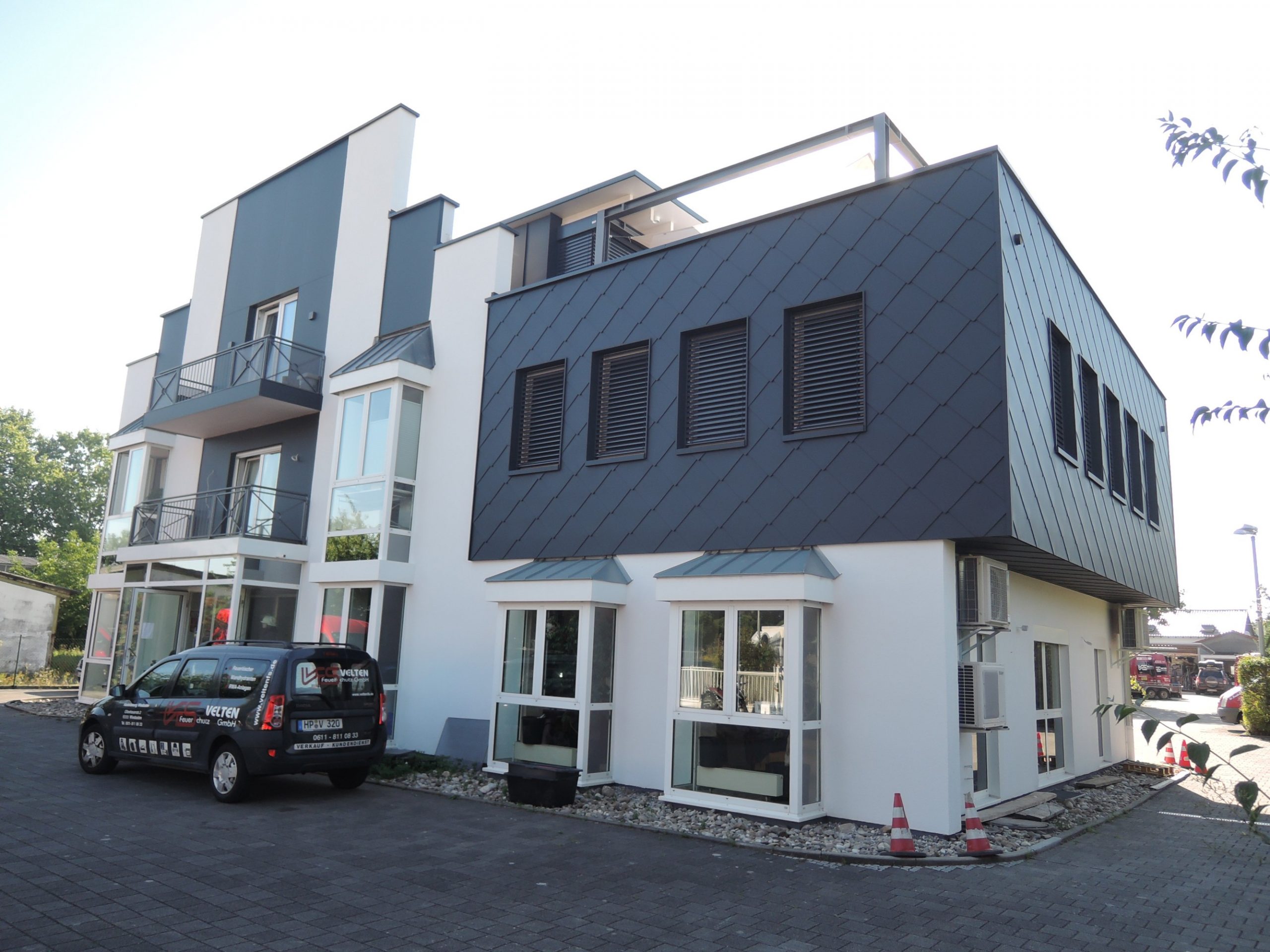 Durch eine Erweiterung in Holzrahmenbauweise wurde der Bürobereich einer Bensheimer Firma erweitert.