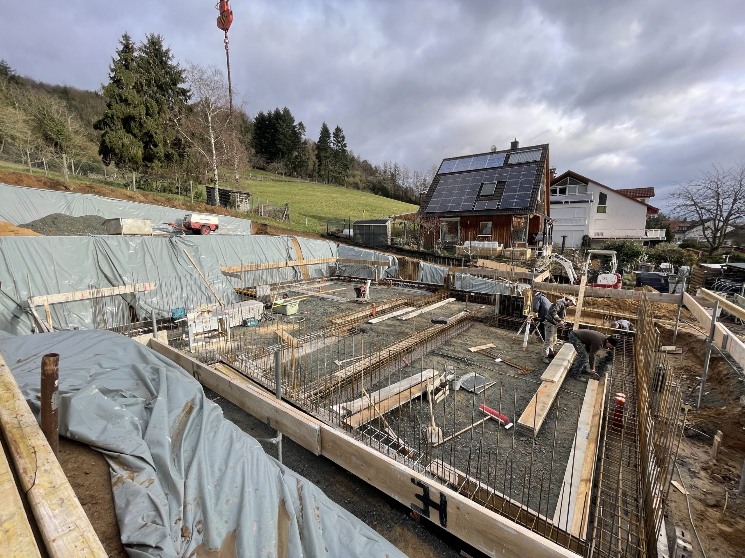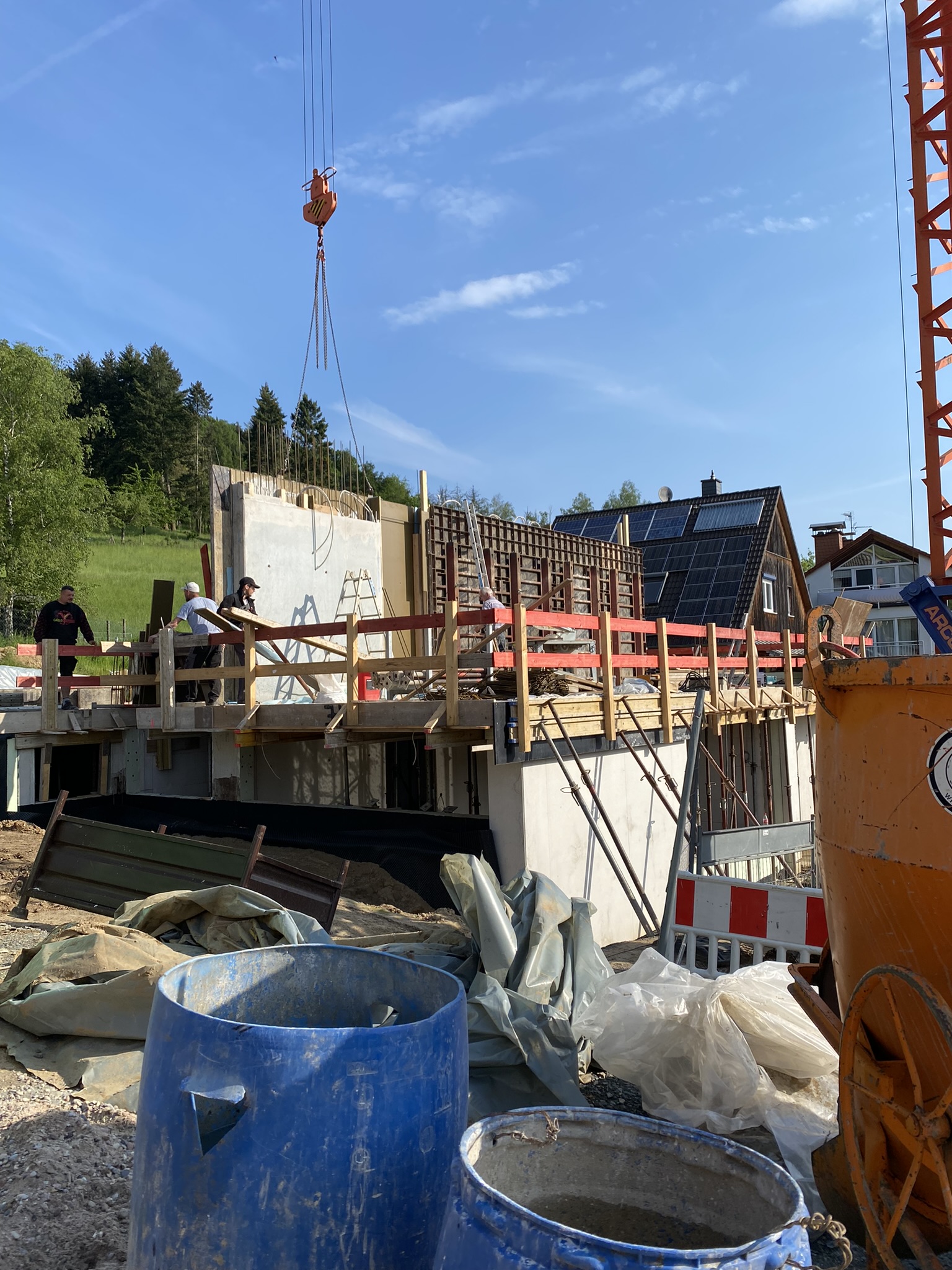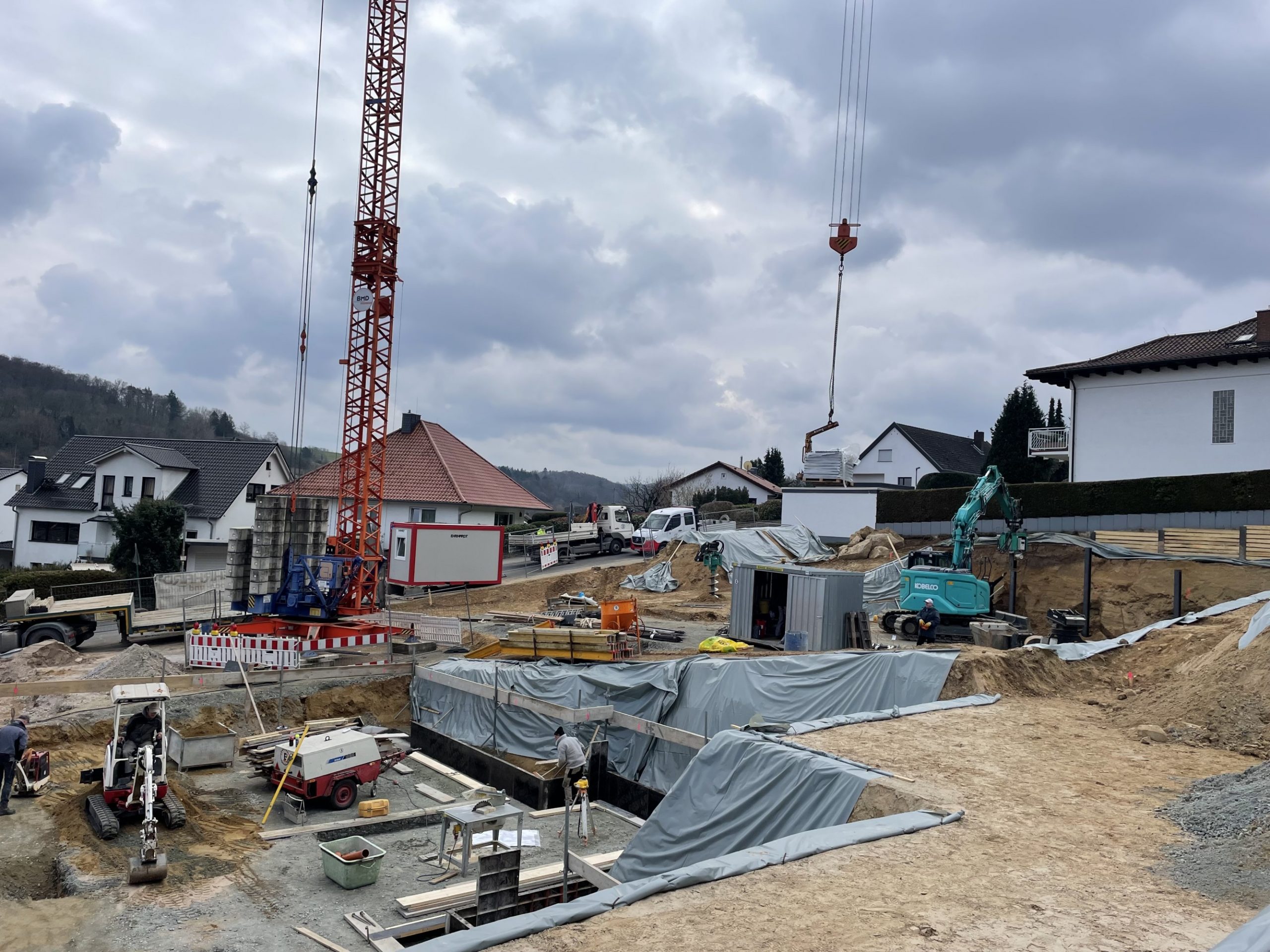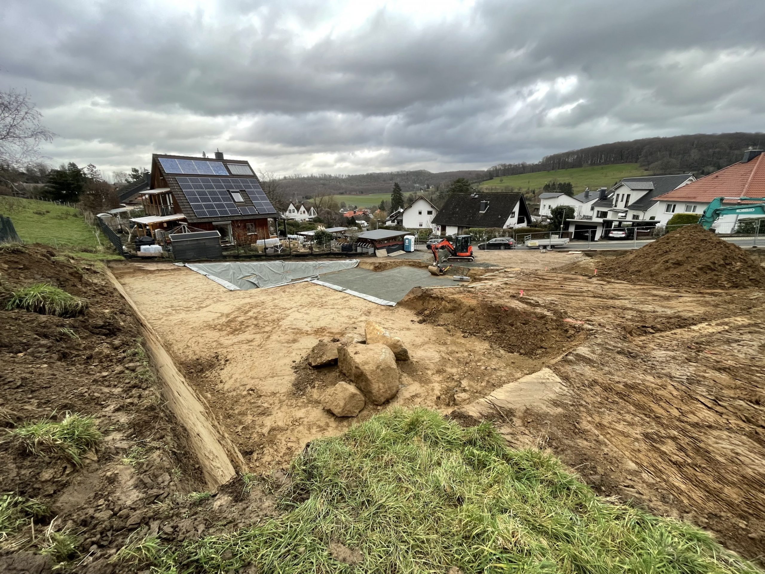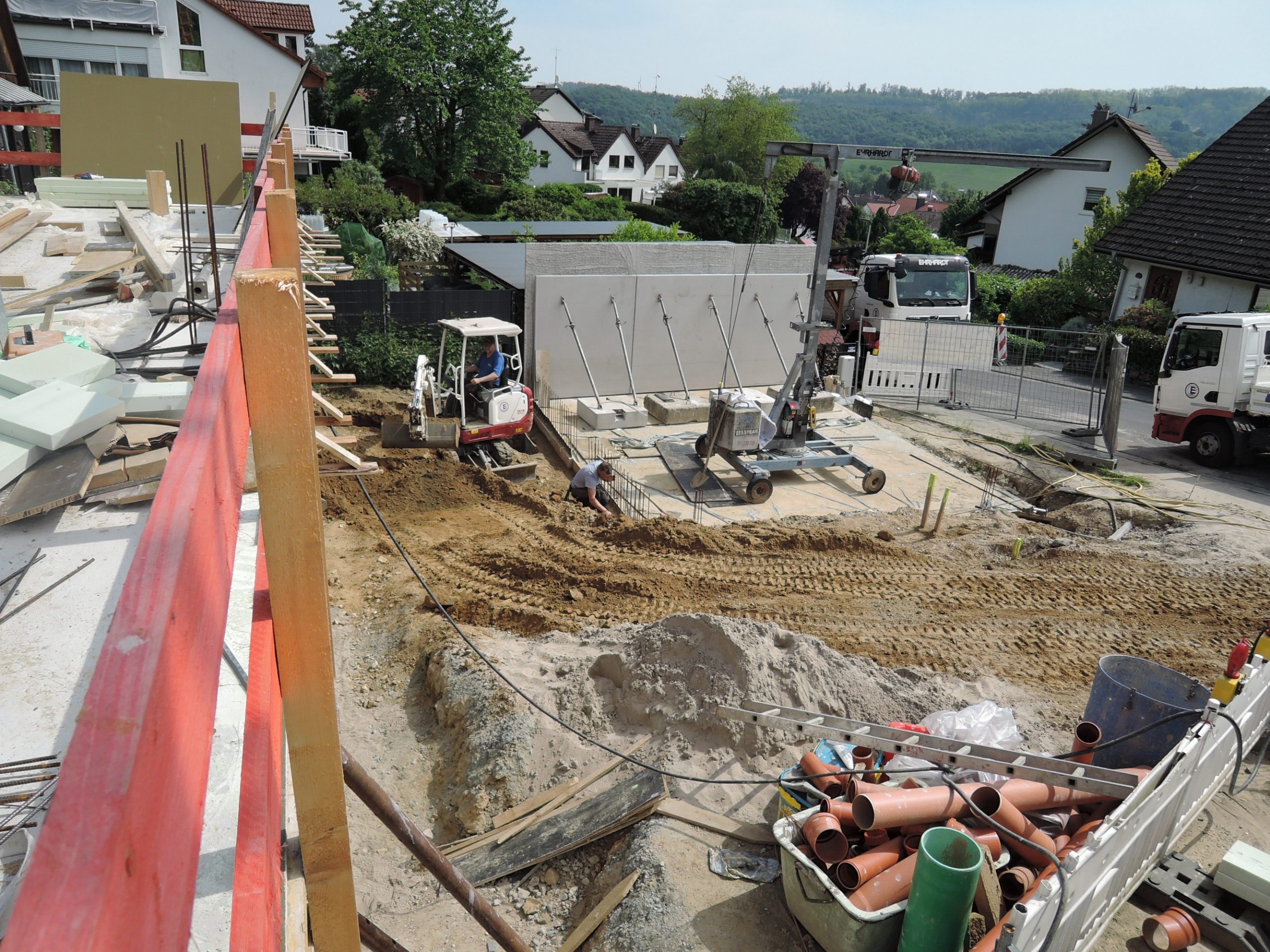 Nachdem die Hürde des komplizierten Baugenehmigungsprozesses geschafft war, konnte die Baustelle im Januar 2023 begonnen werden. Leicht zeitversetzt liefen die Baustellen, sodass ein Haus schon im Juli 2024 bezogen werden konnte.