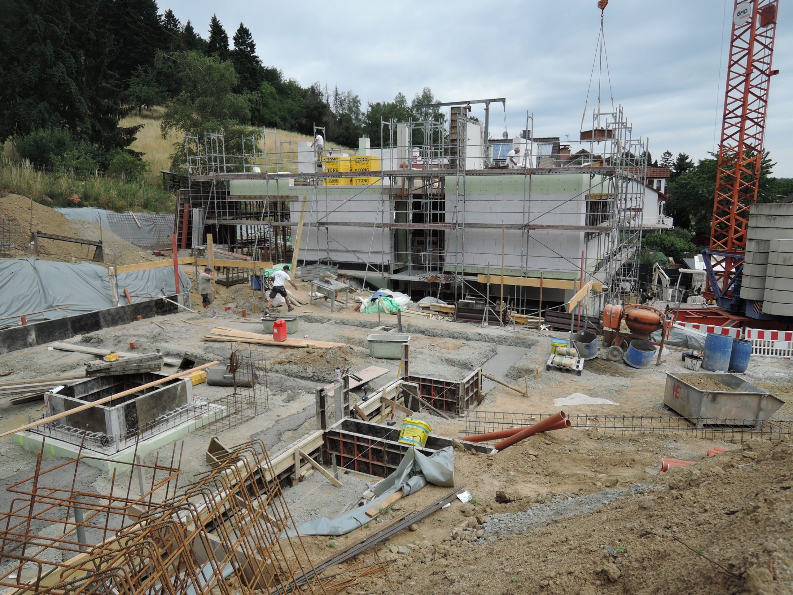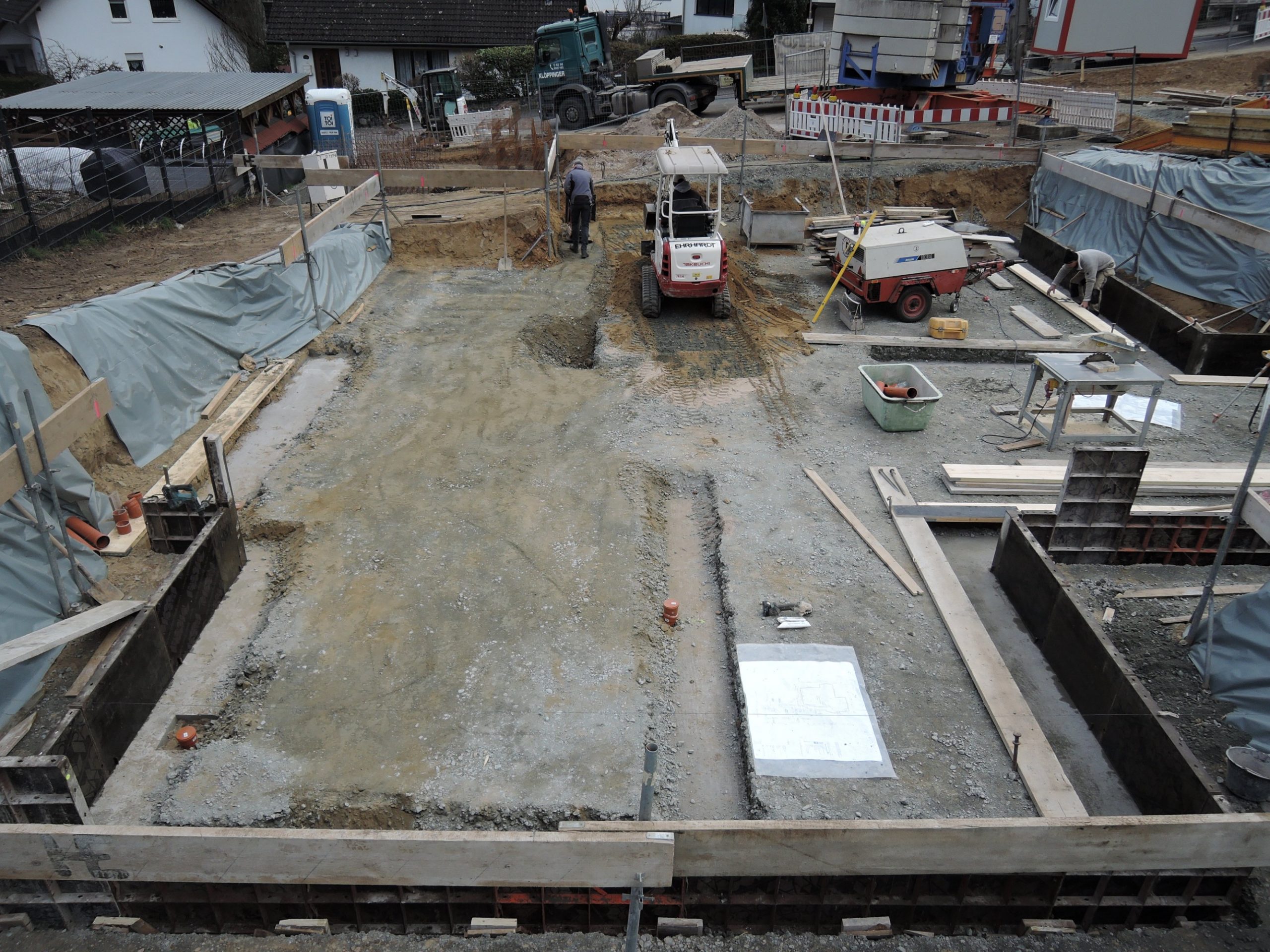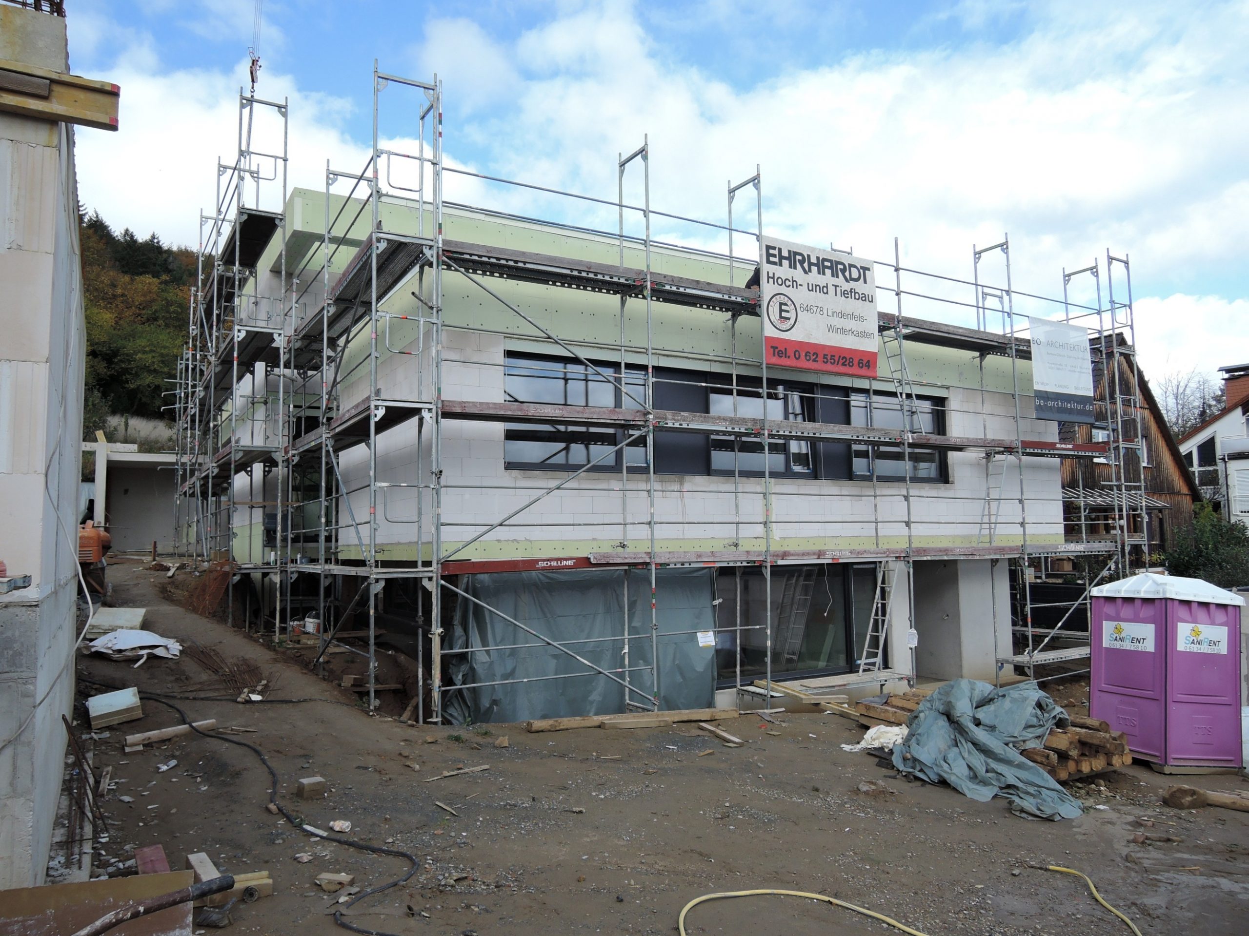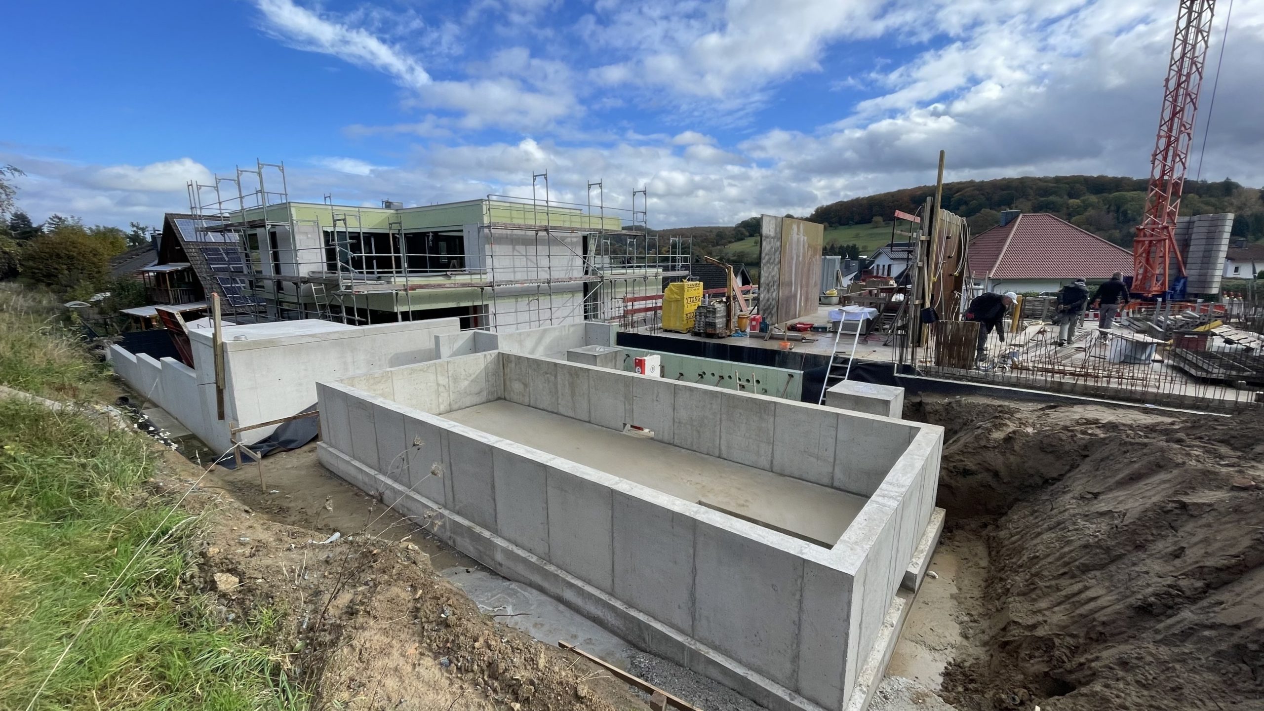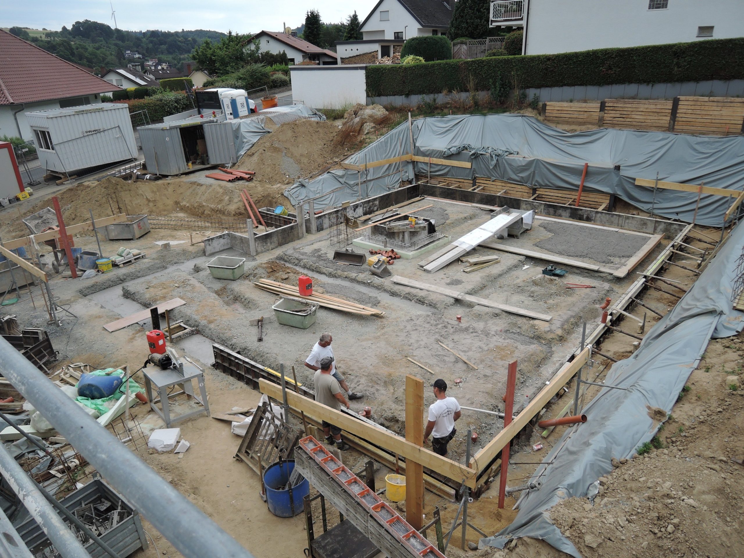 Nachdem die Hürde des komplizierten Baugenehmigungsprozesses geschafft war, konnte die Baustelle im Januar 2023 begonnen werden. Leicht zeitversetzt liefen die Baustellen, sodass ein Haus schon im Juli 2024 bezogen werden konnte.