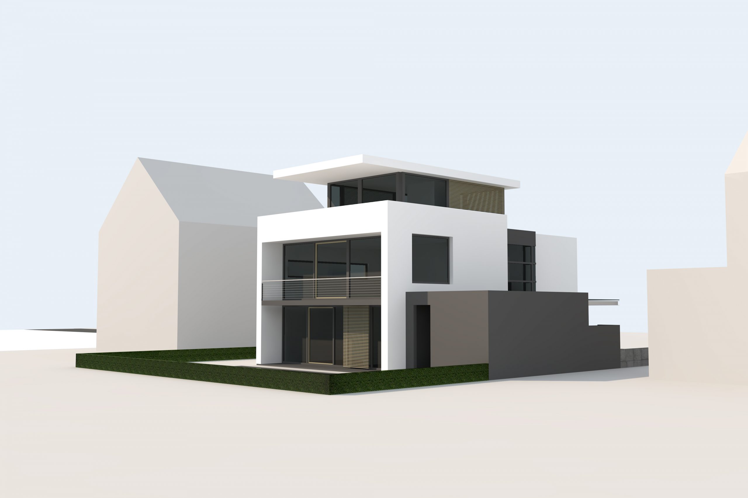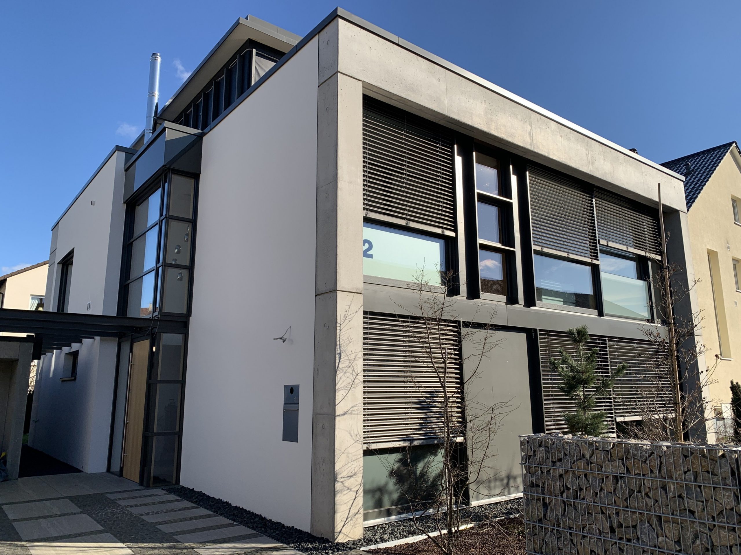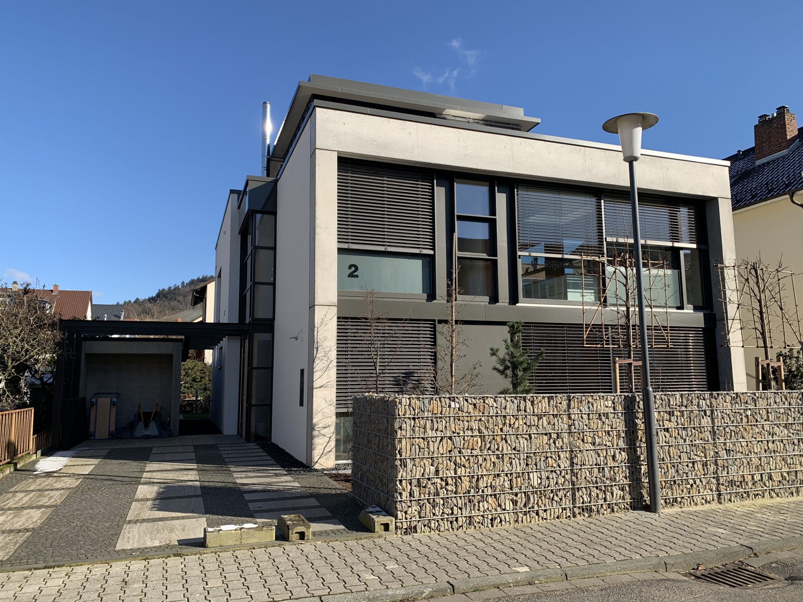 In einem gewachsenen Wohngebiet in Heppenheim entstand auf einem 400 m2 großen Abrissgrundstück ein neues Wohnhaus in Flachdachbauweise.