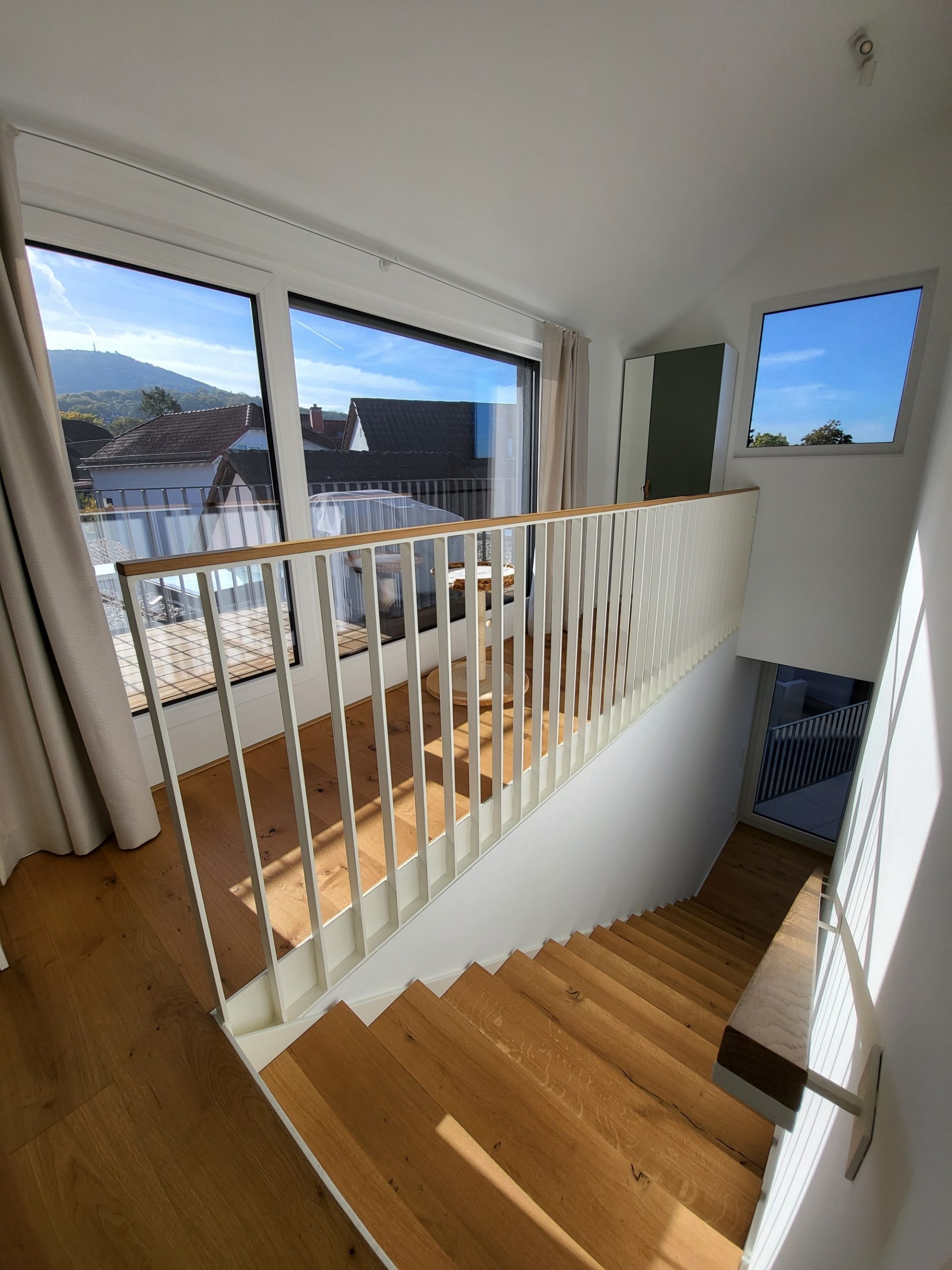 Im alten Ortskern von Alsbach wurde nach dem Abriss des vorherigen Bestands ein Zweifamilien-Energieeffizienzhaus im KFW55-Standard errichtet. Das schmale, längliche und abgewinkelte Grundstück hat einige Herausforderungen im Entwurf mit sich gebracht. Angelehnt an typische frühere Ortstrukturen wurde ein 2-teiliges Gebäude entwickelt. Das Hauptgebäude, da an beiden Seiten auf der Grundstücksgrenze steht, wird durch ein kleines giebelständiges Vorderhaus ergänzt, das den Straßenzug harmonisch abrundet. So entsteht ein einladender Hof zur Straße und ein schöner Garten im hinteren Bereich.