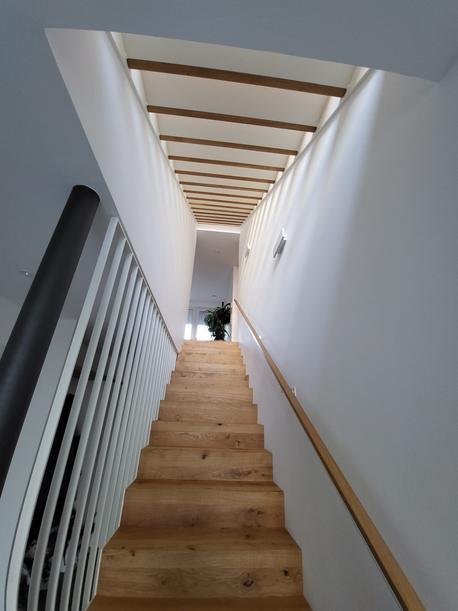 Die technische Ausstattung umfasst eine Luft-Wasserwärmepumpe, eine kontrollierte Wohnraumlüftung und eine Photovoltaikanlage.